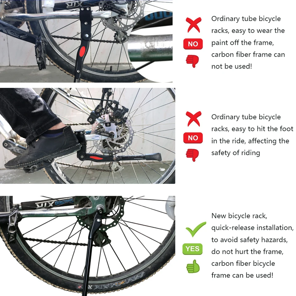 Jimly alloy bicycle kickstand adjustable non slip rear side bike kick stand for 22 24 26 27 mountain bike adult bike and700 road bike. The sight of a kickstand on a road bicycle is bound to annoy a cycling purist. I saw a race where a guy was trying kick his kickstand back in place after it fell down. A good kickstand is a great way to keep your bicycle free from scratches dents and dings that accumulate if you lay it down on the ground when you re not riding.
